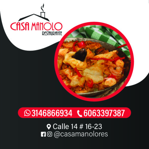 Descubre el auténtico sabor de Colombia y España en Casa Manolo! Con 36 años de tradición en Pereira, nuestro restaurante te ofrece una experiencia culinaria única. Deléitate con nuestra exquisita comida típica y española, preparada con pasión y dedicación. Nuestra cocina de calidad te transportará a los sabores tradicionales que tanto amas. ¡Ven y disfruta de una experiencia inolvidable en Casa Manolo!