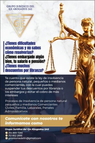 En Grupo Jurídico del Eje Abogados SAS realizamos procesos de Insolvencia de persona natural pequeños y medianos Comerciantes Civiles, Familia, Laborales, Penales Administrativos